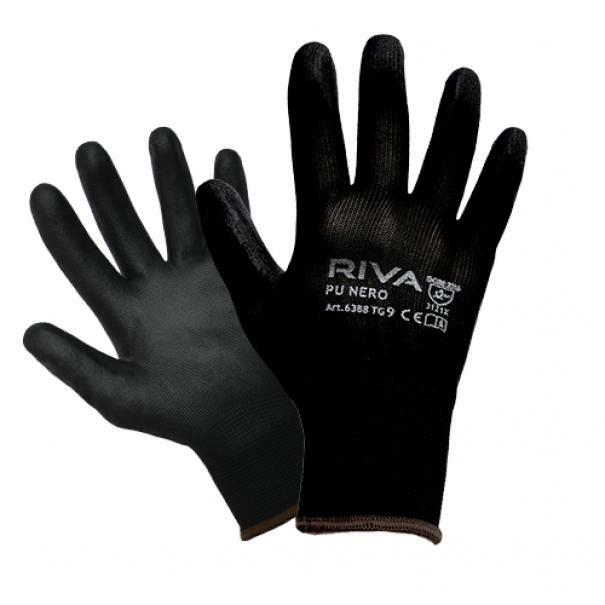 Spalmatura in poliuretano nero su palmo e punta delle dita.
